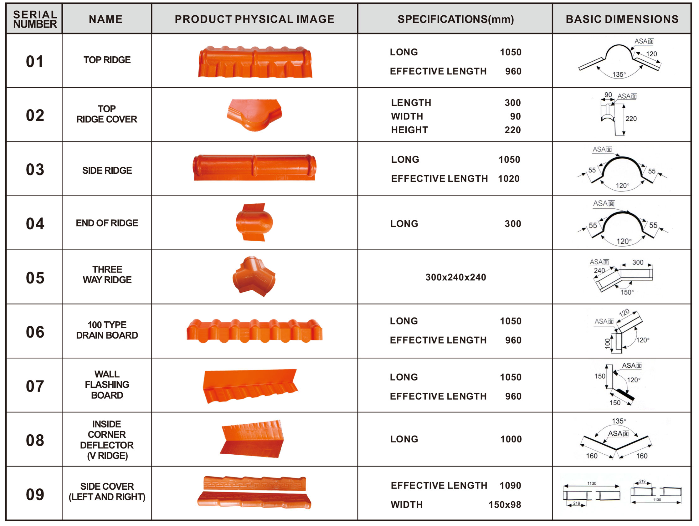 The coefficient of heat conductivity is 0.325w/m.k, which is about 1/3 of clay tile, 1/5 of 10-mm thick cement tile,and 1/2000 of 0.5 mm thick color-coated steel tile. It has good sound insulation abillty
